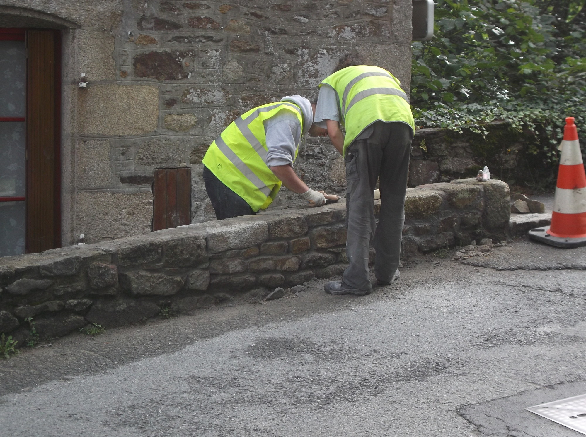 Réfection d'un muret dans le bas du bourg de Lehon