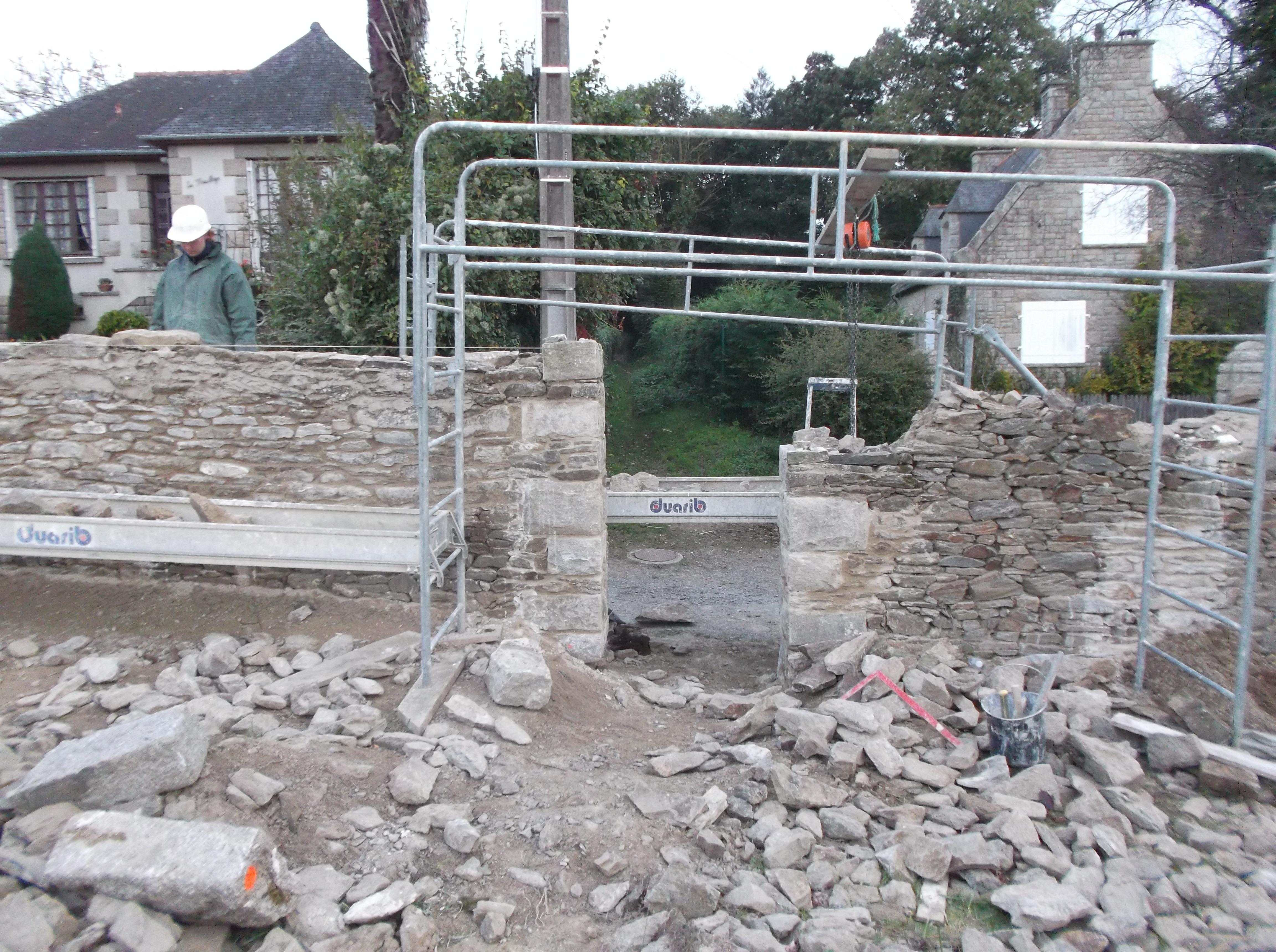 le chantier a duré 1 mois et à consister à reconstruire le mur à l'identique.